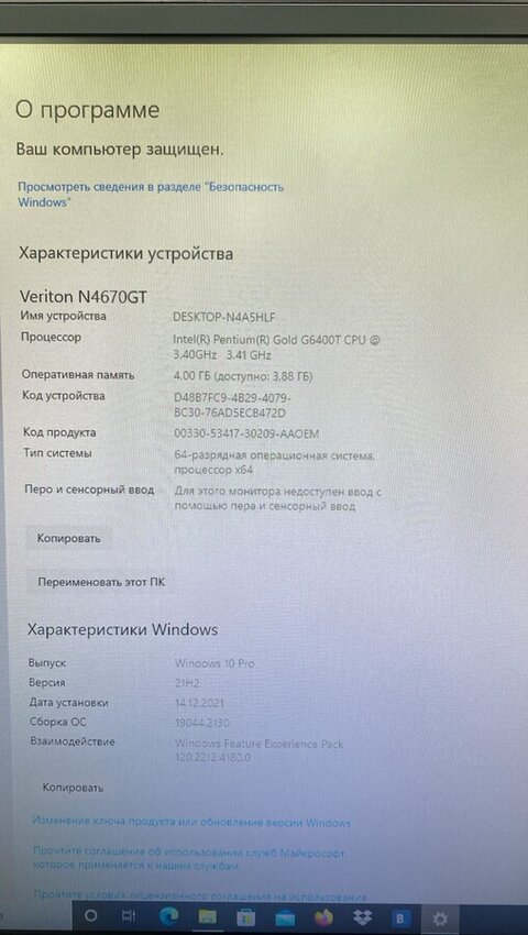 Неттоп ACER n4670gt Pentium Gold/8/250ssd